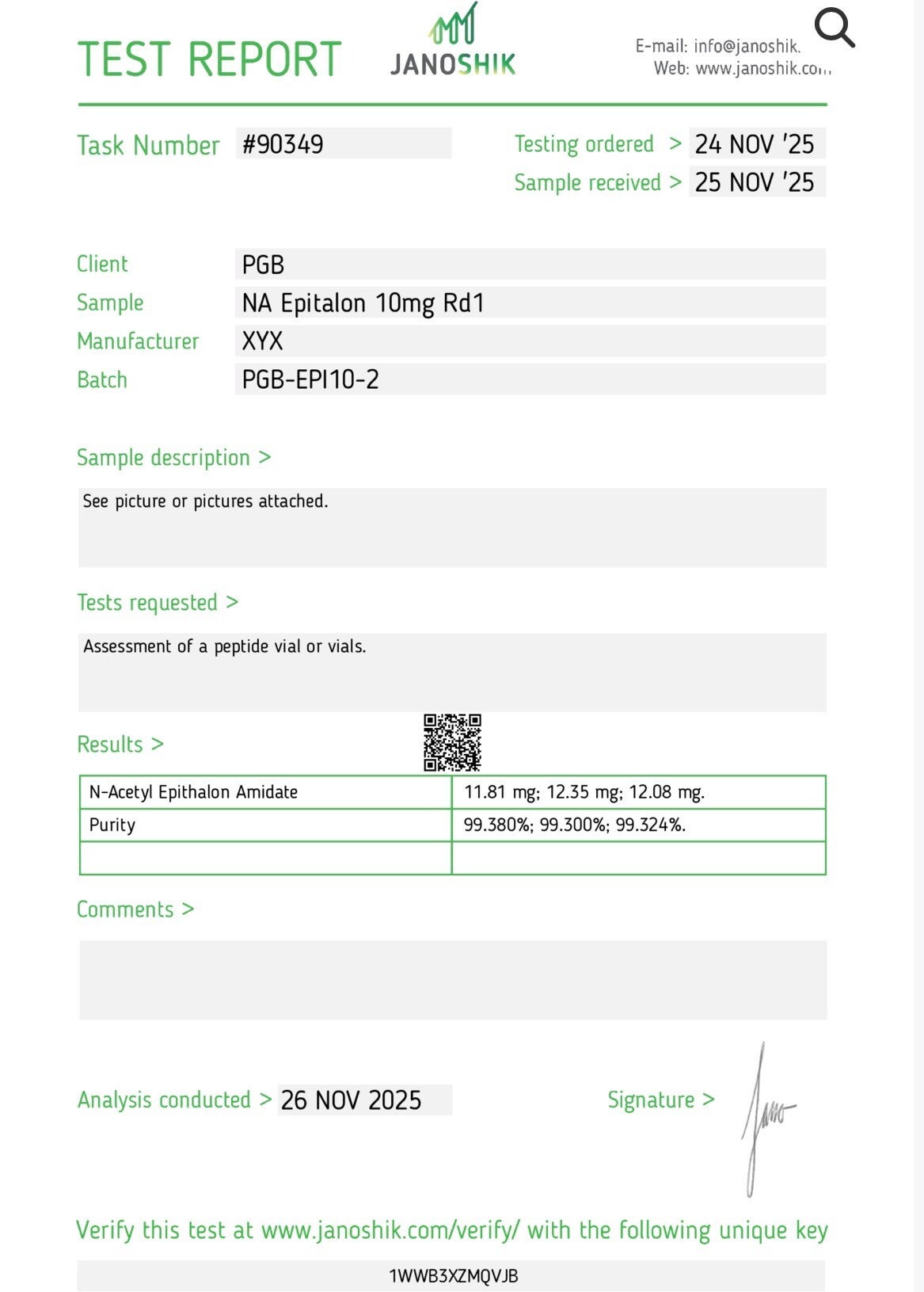Epithalon lyophylized powder, 1 vial of BAC water. Ready for mixing, research use.